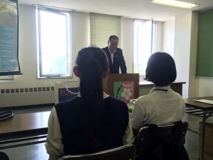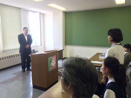 その後、副市長さんからごあいさつと北方領土問題のレクチャーをしていただきました。無関心か一番恐ろしい、ということを各自心に刻む契機となったと思います。