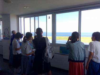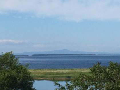 別海北方展望塔から国後島を遠望しました。写真では分かりにくいのですが、快晴で空気も澄んでいて国後の山々がくっきりと見えました。南港から見る淡路島よりも近い感じです。