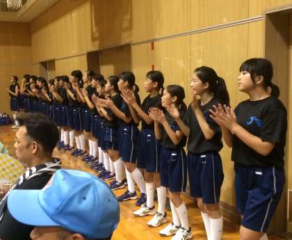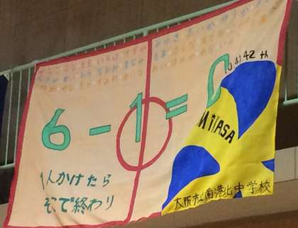 会場には1・2年生の手づくりの応援旗もあり、沢山の保護者の皆さんと一緒に応援も盛り上がっていました。明日は住吉中学校で9時頃からの決勝トーナメント第一試合に登場します。応援よろしくお願いします。