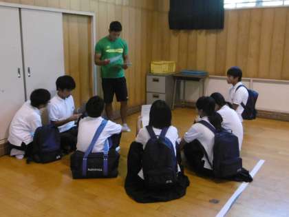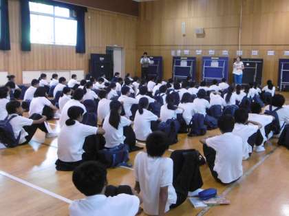 2年生は午後から、来週の木・金に予定されている職場体験でお世話になる各事業所へあいさつに出かけました。全体説明の後、事業所ごとに諸注意を受けて出発しました。