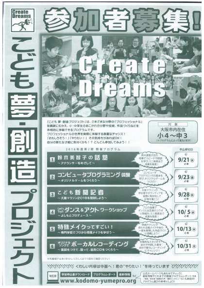 「こども 夢・創造プロジェクト」のチラシを配布しました。