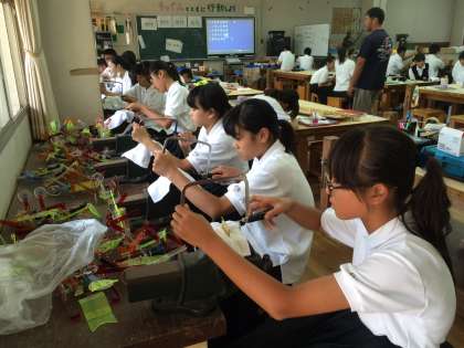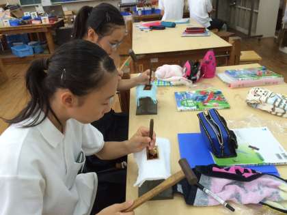 真鍮の材料を叩いたり、金のこで切ったりして形を整えていきますが、やっぱり固い。苦戦する場面もありますが、オリジナルのキーホルダーを作ります。