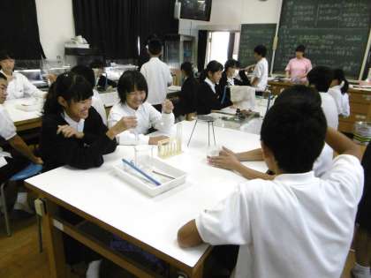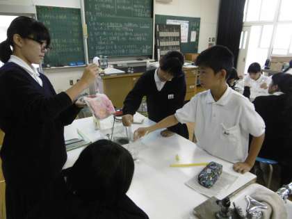 物質の性質の単元で、塩化ナトリウム、硝酸カリウム、ミョウバンを調べています。
