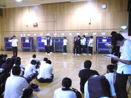 格技室では2年生の演技の練習中。まだまだ時間がかかりそうです。
