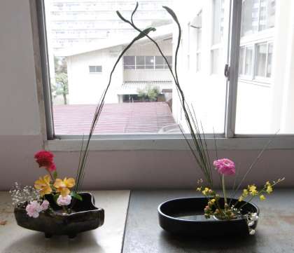 11月第2週の華道部の作品です。校長室前・図書室前の廊下にありますので、ご来校の折には、ぜひご覧ください。