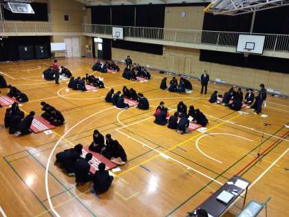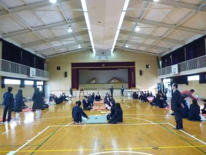 1月10日5,6限体育館で「百人一首大会」を開催しました。結果の方は学年だよりに掲載していますので、そちらで見て頂けたら!底冷えのする体育館で、熱い戦いを繰り広げました。