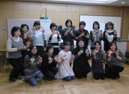 最後は作品を持って全員でハイ、ポーズ。楽しい時間を過ごしました。