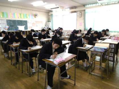 朝から、国語、数学、英語の順に試験に取り組んでいます。私立の受験校も決まり、いよいよ入試モードが高まり、いつも以上に真剣な姿が見られました。