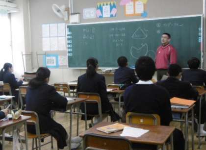 1限目、2年1組の数学の授業は「二等辺三角形の性質」です。