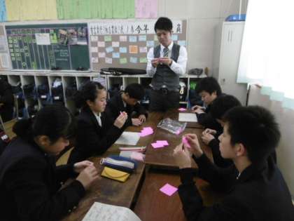 今日から2年生では、修学旅行で広島を訪れる際に持参する千羽鶴づくりが始まりました。