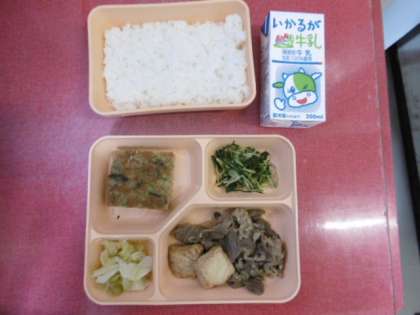 すき焼き煮、ひじきの厚焼き卵、水菜のおひたし、