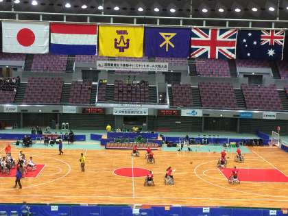 スピード豊かで巧みな車椅子さばき、車椅子がぶつかる大きな音も聞こえて迫力満点の試合でした。