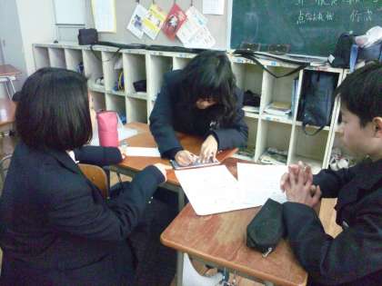 2年生では「総合的な学習」の時間に「視覚障がい」について学習をしてきました。視覚障がい者の山本さんと盲導犬のフェリシアに来ていただいて講話をしていただいたり、アイマスク体験をするなど「視覚障がい」についての理解を深めました。そのまとめとして、1月29日の5限に山本さんへのお礼状を点字でつくりました。学習だけに終わらずに、視覚障がいの方だけでなく街で困っている人を見かけたら、何かサポートできることはないかと考え、行動できる人になってほしいと思います。