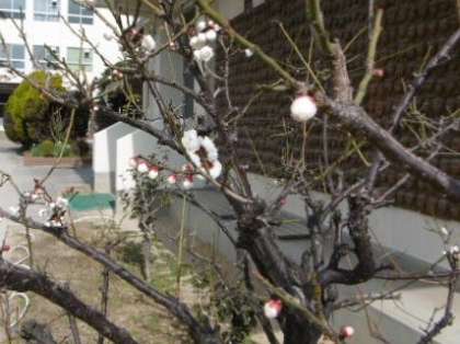 校庭の白梅や水仙が目を楽しませてくれます。