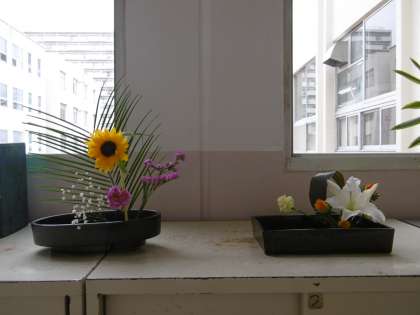 華道部の作品です。毎回ですが、本当に心和みます。ありがとう。この花を見て何人の人が、目を澄ませ、心を洗うことができたでしょう。