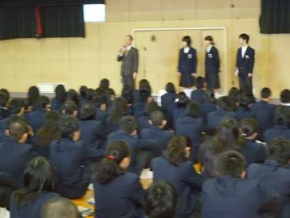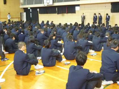 本日全校集会の場において、全校生,全職員で校長先生から講話していただき、黙とうをしました。