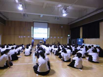 2年生は、住之江警察交通課の方をお招きして、『交通安全教室』を開催しました。特に自転車の運転について注意するべきところを教えていただきました。ありがとうございました。