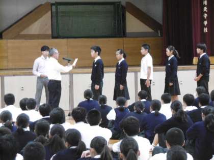 各学年の3組の学代が代表として、認証状を受け取りました。