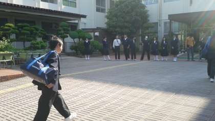 連休明けの7日(水)、風紀委員会の活動がスタートしました。玄関前で「おはようございます」の声かけ、名札を出してくださいetc...まだまだ小さな声で、高校の代休を利用して特別参加した今春卒業した先輩の声が響いていました。がんばれ、風紀委員!