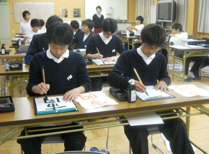 9日(金)、今年最初の「元気アップ書道教室」を開催しました。常連の2・3年生にまじって1年生も書道に挑戦。好きな文字のお手本を菊澤先生に書いていただき、真剣に練習しました。月に1度くらいでも結構みんな上達しました。これからもがんばれ!