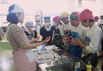 今日は2年生が調理実習に挑戦しました。メニューは「鰯の蒲焼きとオレンジゼリー」。丸々と太った立派な鰯をおっかなびっくり手開きしていました。意外と上手な男子がいてたのもしい限りでした。