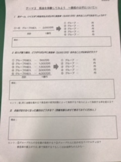 グループに分かれて、税金を体験して課税の公平性についての勉強をしました。