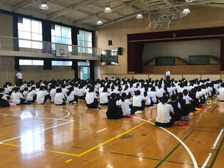 本日は、2学期最初の全校集会がありました。校長先生から次のようなお話がありました。・今日から6時間授業が始まりますが、心の面でしんどい人やつらい人はいませんか。心当たりのある人はつらいとは思いますが必ず身近の人に相談してください。・9月1日の平和登校日に参加してくれてありがとうございます。これからの平和な社会を築く主役は君たちです。他の国々の人たちと協力して戦争のない平和な社会を築き上げてください。・朝日新聞の天声人語に【いいこと日記】が記載されていましたので、その紹介です。毎日を不平不満やストレスで過ごすよりも、何かいいことを見つけ心を豊かにしてみてはいかがですか。1日3ついいことをメモするだけです。試してみては? 以上でした。
