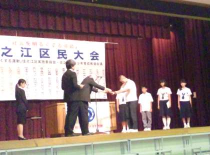 7月3日(木)「『社会を明るくする運動』住之江区民大会」が区民ホールで行われ、本校2年生K・Aくんが、青少年非行化防止標語優秀賞の表彰を受けました。