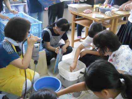 前回に引き続き「陶芸の会」の皆さん15名に来ていただき、釉薬の準備から絵付けの指導、釉薬がけまでお手伝いいただきました。ありがとうございました。