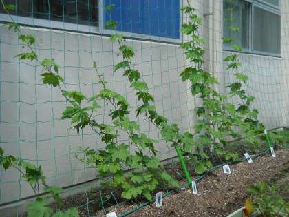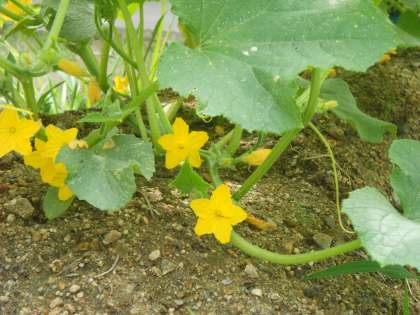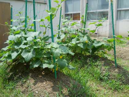 梅雨明けにはもう少しかかりそうですが、水泳部有志が中庭で栽培しているきゅうりが黄色いきれいな花をつけました。緑のカーテン用のゴーヤもすくすく成長しています。夏本番ももうすぐですね。