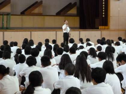 「生活安全教室では、ケータイと薬物の話がありました、薬物の怖さ、中毒性のお話。