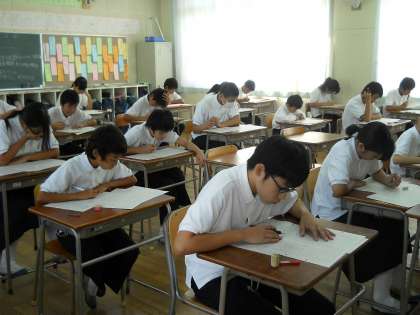 今日は3学年とも実力テストです。どの学年の教室でも真剣にテストに取り組む姿がみられました。1,2年生は夏休みの課題からの出題も多かったようで、課題をきちんとやっていた人はよくできていたようです。3年生はこれから毎月テストが続きますが、自身の進路実現をめざして頑張ってください。