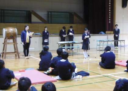 定例の全校集会を行いました。