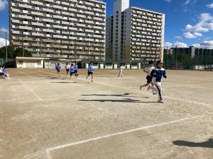 体育の授業では持久走が行われています。男女ともに2000mを走ります。目標タイムを目指してとても頑張っています。苦手にしている人もいると思いますが、みんな最後まであきらめずに走り切っています。すばらしい!!