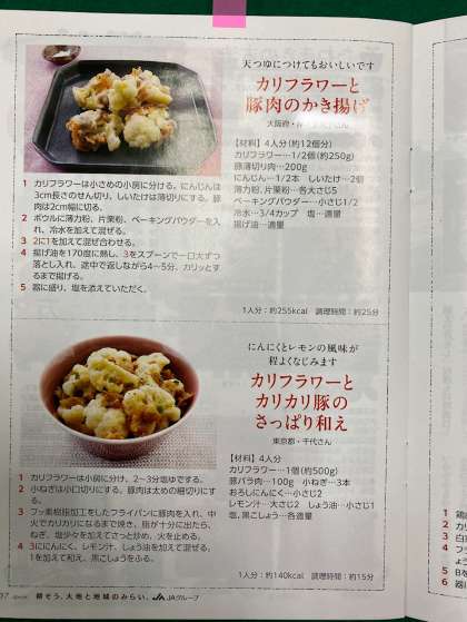 先日、Apronというお料理を扱った小冊子に、ご自身が考えられたカリフラワーのレシピが載ったそうです。