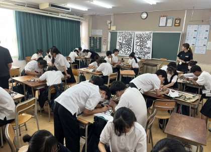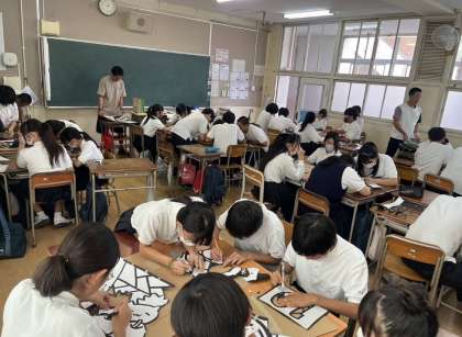 本日は土曜授業で、防災学習・防災訓練を行いました。2年生では、22日の学習に引き続き、地震や防災に関する各クラスでの講義の後、前回取り組んだ防災マップを作成しました。地域防災に関する情報を、より理解することができました。