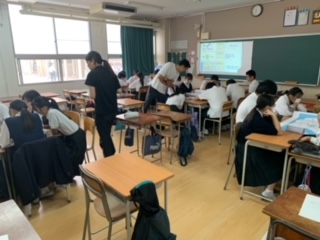 写真は、テスト前の教室の様子です。いい緊張感で、準備ができていました。これまでの学習の成果を発揮して、最後まで頑張って欲しいです。 -