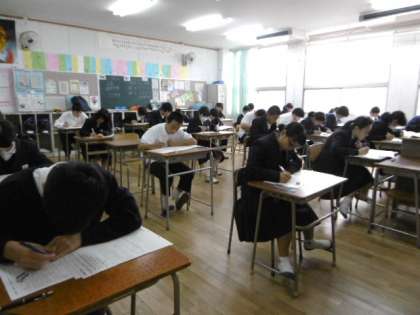各学年とも1時間目の国語のテストに真剣に取り組んでいました。
