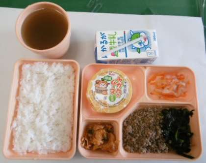 ほかに、みかんの豆乳ムース、とうふとわかめのスープがつきます。 -