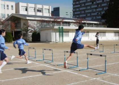 左)バドミントン部。体育館が使えない時は運動場で練習です。