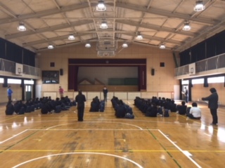 3限後体育館へ集合。持参書類の最終確認をして全体注意後、