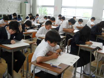 先週、「中間テスト、しっかり準備して、勉強しなければならないときはしっかりやりましょう。」と言いましたが、どうでしたか?今日から順次返してもらいますが、点数は気になるところですね。でも、それよりも大切なのは、テストを返してもらってからです。前にも言ったように、定期テストというのは決まった範囲から出題されますね。その範囲の授業の内容をどれだけ理解できているかを確認するのが目的です。ですから、できなかったところ、分かりにくかったところを確認して手当てする。それが大切です。その繰り返しで、学習の理解が深まり、ひいては高校の入学試験にもつながります。点数だけ気にして過剰に反応する前にやるべきことをやることです。授業をいい加減に受けていて、点数や成績だけを気にするのは論外です。この機会に、授業への取り組み方も振り返ってみてください。