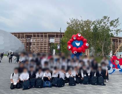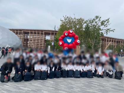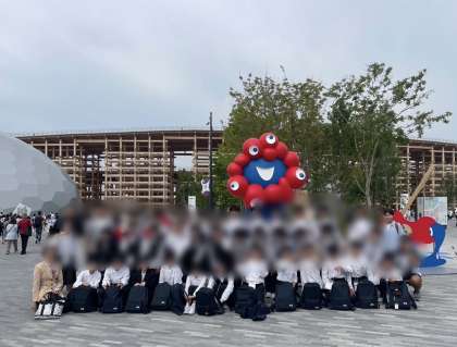 ミャクミャク像前で集合写真を撮って、班別行動に移っています。