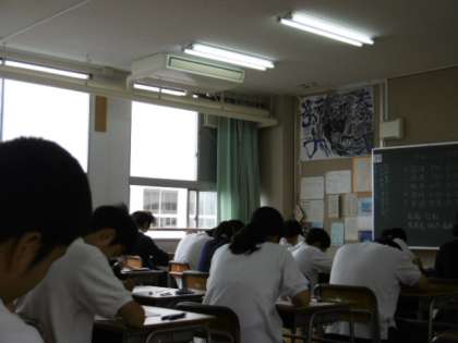 本日は、大阪府下で一斉に3年生のチャレンジテストが実施されています。進路用の評価にかかわる大切なテストです。3年生の皆さん頑張ってください。写真は2時間目の社会科のテスト受験風景です。上から1組〜3組です。