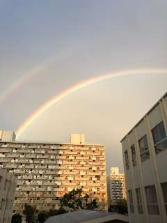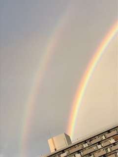南港北中学校の東の空に、二重の虹がかかっています。とてもきれいです。