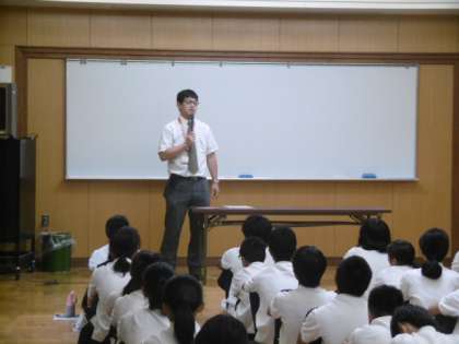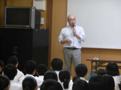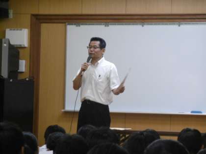 まずは、校長先生の講話から始まり、生徒指導主事のM先生からのお話がありました。