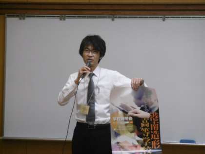 本日の3・4時間目に、3年生を対象にして高校から出前授業に来ていただきました。府立港高校、市立住吉商業高校、府立港南造形高校、私立城南学園高校、私立興國高校の6校から全体説明を受けた後、出前授業を受けさせていただきました。