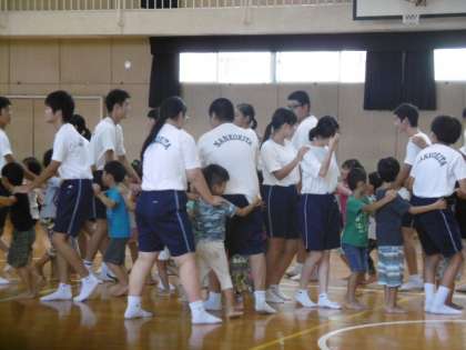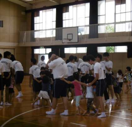 たった2時間弱の短い時間でしたが、中学生はとても満足げでした。暑い中、園児たちを引率してくださった<きのみ保育園>の先生方、本当にありがとうございました。今回の体験活動の目的である「幼児との生活や行動の特徴を知り、幼児とのかかわり方を考える」ことは十分達成できたと思います。今日、中学校に来てくれた<きのみ保育園>の園児の皆さん、どうでしたか?楽しかったですか?また、いっしょに遊びましょう。