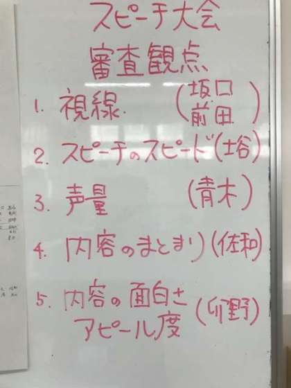 また、学年では、5つの観点を意識しながら、人前でスピーチする力を高める取り組み(写真2枚目と3枚目)を行なっています。