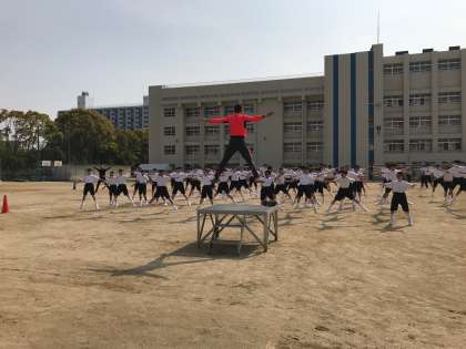 朝原宣治さん、荒川大輔さん、山本慎吾さん、3名のコーチに、NOBY運動を始め、身体の使い方を教えていただき、生徒達も楽しく、プログラムに取り組んでいました。
